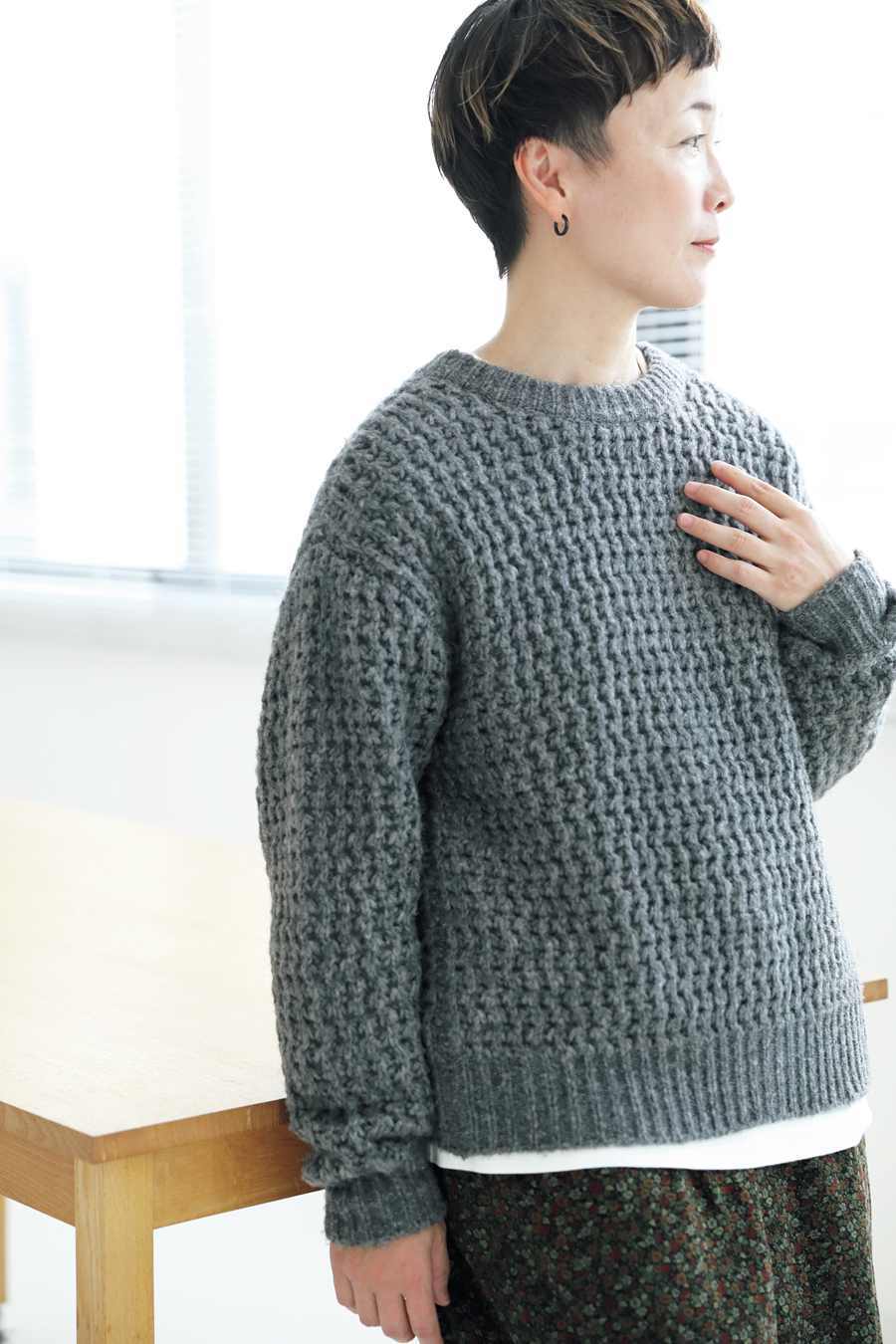 「凹凸のあるざっくりとした編み地が、秋冬のスタイリングを表情豊かに仕上げてくれます」とプレスの三島美紀さん。