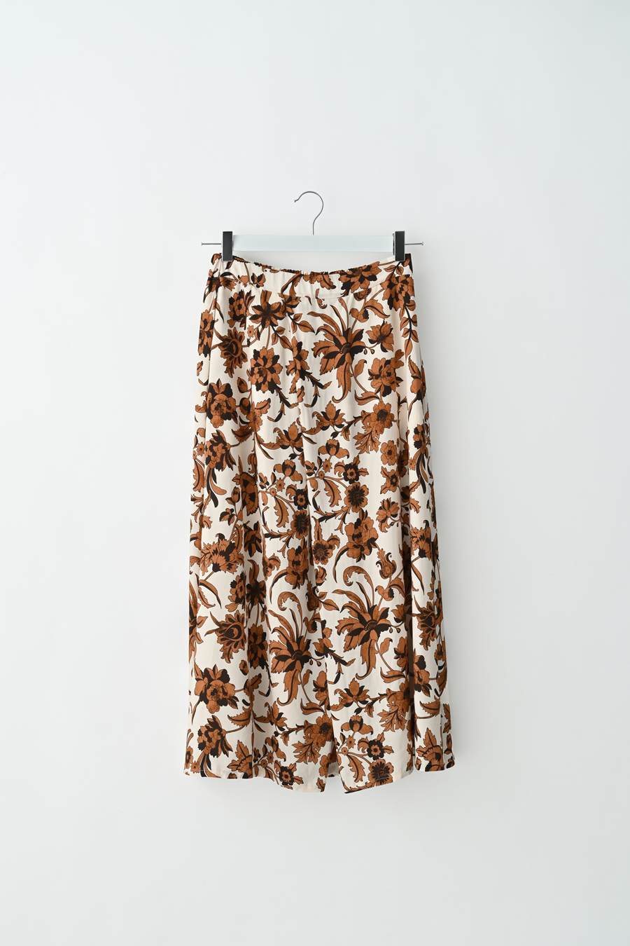 装いに華やぎを添える色や柄使いも得意とする「ル・ピボット」。今シーズンはオリジナルのフラワープリントで仕立てたスカートが登場。シックな色使いで、大人にこそ似合うエレガントな一着です。