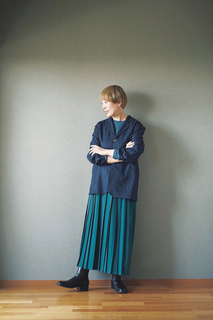 私が以前、好きな生地を選んでオーダーし、久しぶりにはいたプリーツスカート。上品な印象になるし、動くたびに揺れるヒダがきれいで、すっかりワードローブの定番になりました。